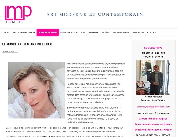 Dans le cadre de son parcours artistique, Miska de Luber rejoint le Musée Privé aux côtés de Patrcik Reynolds. Ce partenariat offre à ses oeuvres un espace de diffusion exigeant, tourné vers la décourverte et la transmission de l'art.