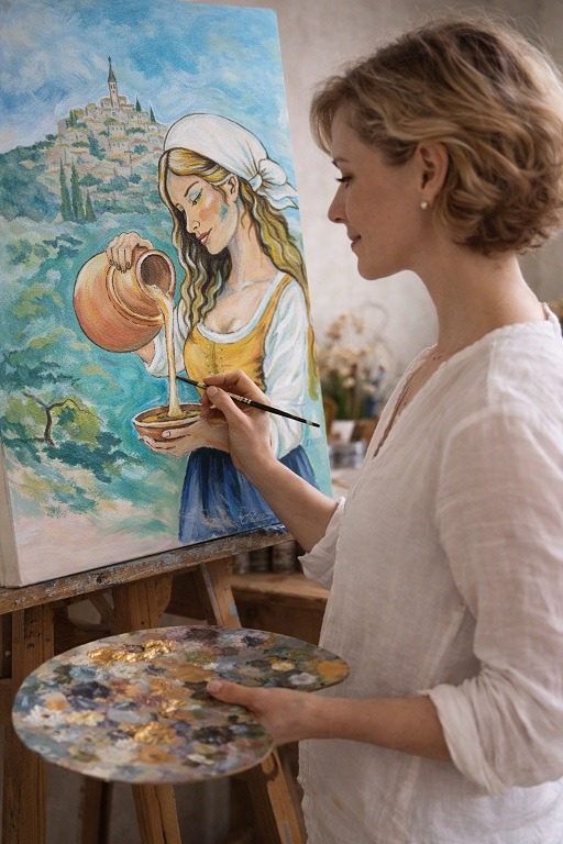Miska de Luber, peint - avec son âme - et la lumière du Luberon, capturant le temps et la matière dans chaque geste.